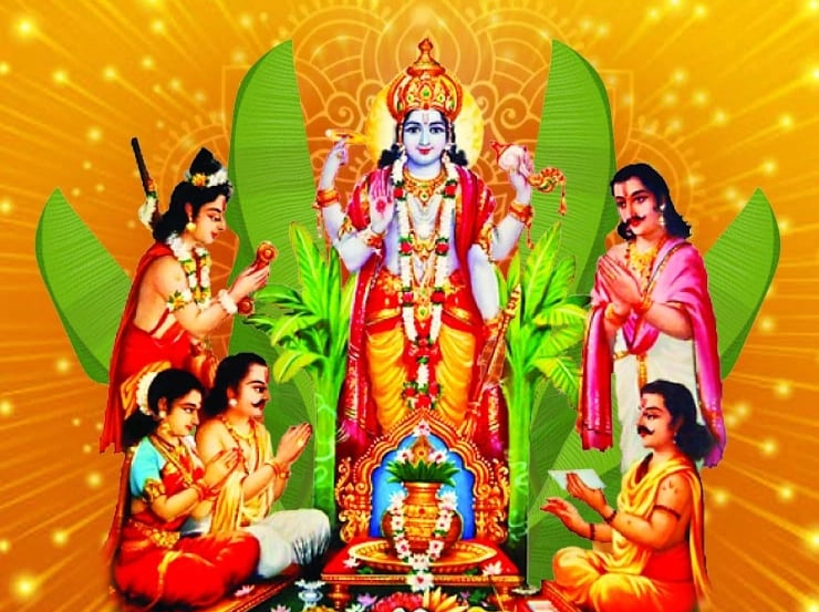 According to Satyanarayan Brata Katha, once a Brahmin decides to observe a fast with his wife to get results in the name of Shri Narayana. They are poor and during the fast they worship God by meditating, worshiping and listening to stories. As a result, they attain wealth, prosperity and peace. By reciting this story, a person's wishes are fulfilled and he achieves religion, work and devotion.